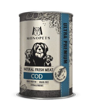 Hypoallergene graanvrije blikvoeding met verse kabeljauw voor alle hondenrassen