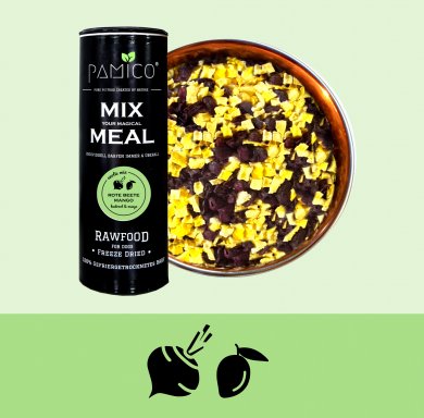 Pamico gevriesdroogde groenten kun je zo op het voer doen, maar je kunt ze ook een 10tal minuten laten weken in lauw (gefilterd) water alvorens te geven.